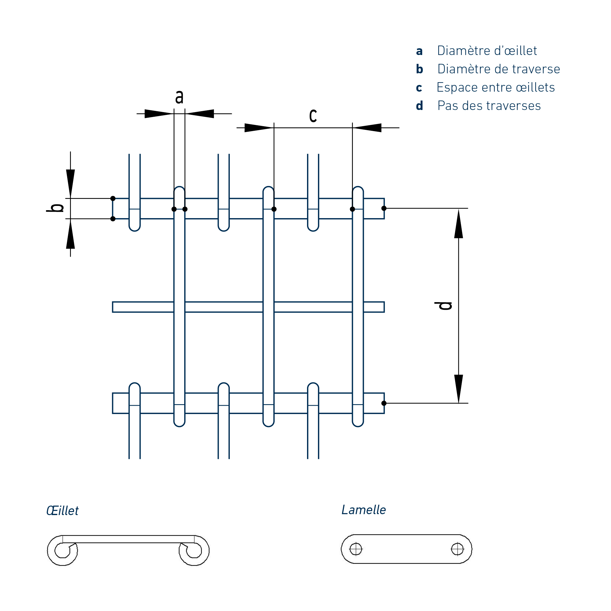 • Œillets : Ø 2,0 à 4,0 mm